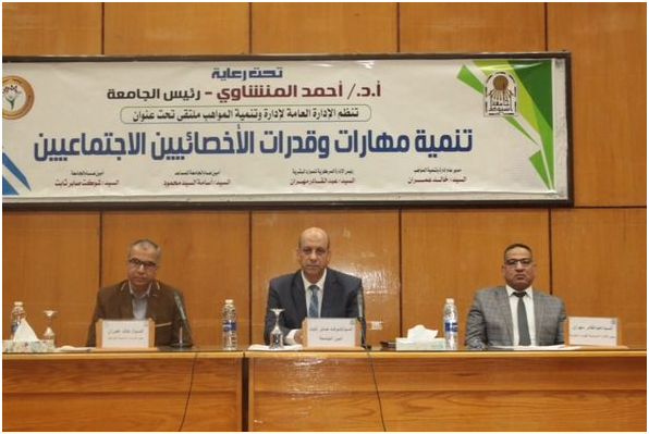إدارة وتنمية المواهب بجامعة أسيوط تنظم ملتقى "تنمية مهارات وقدرات الأخصائيين الاجتماعيين"