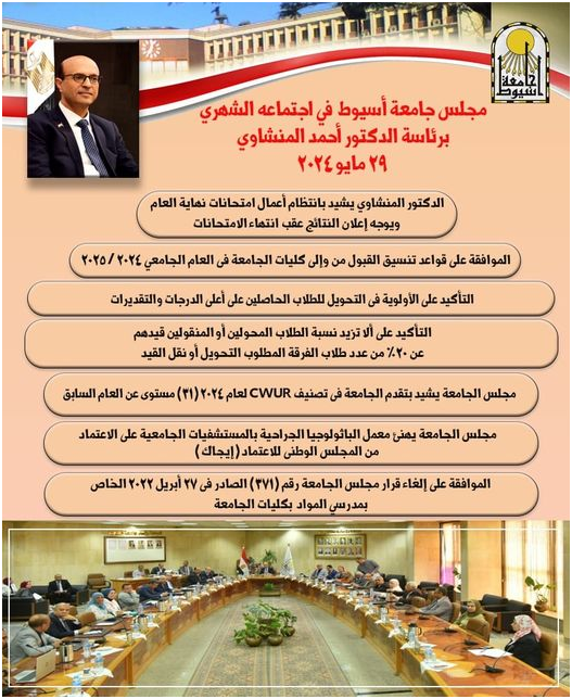 مجلس جامعة أسيوط يعقد اجتماعه الشهري برئاسة الدكتور المنشاوي: