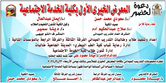 ونظمت كلية الخدمة الاجتماعية بالجامعة، يوم الأربعاء الموافق ٣ من أبريل الجاري؛ إفطاراً جماعياً لأبناء الكلية، بحضور الدكتور أحمد عبد المولى نائب رئيس الجامعة لشئون التعليم والطلاب، والدكتور محمود عبد العليم نائب رئيس الجامعة لشئون خدمة المجتمع وتنمية البيئة، وبإشراف وحضور الدكتور سعودي محمد حسن عميد الكلية، وبمشاركة، الدكتور محمد محمد سليمان وكيل الكلية لشئون خدمة المجتمع وتنمية البيئة، والدكتور عبد الحكيم البنا وكيل الكلية لشئون الدراسات العليا والبحوث، والدكتورة إيمان عبد العال وكيل الكلية لشئون التعليم والطلاب.