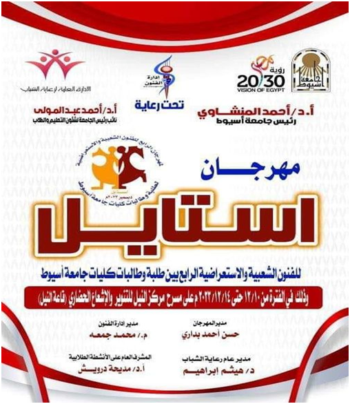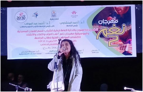 بحضور دكتور/ هيثم ابراهيم مدير عام الإدارة العامة لرعاية الشباب والسيدة الأستاذ الدكتور/ ايمان عبدالعال وكيل كلية الخدمة الاجتماعية لشئون التعليم والطلاب والتى أبدت اهتمامها بالحضور وتشجيع ابنائها من الطلاب ومديرى رعاية الشباب بالكليات ومرافقتهم لطلابهم بالمهرجان والطلاب المشاركين وغيرهم من الطلاب المهتمين بمهرجان نغم ٢