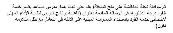 قرار اللجنة بمنح درجة الدكتوراة للباحثه/ هند على ثابت 2 يناير 2019 قرار اللجنة بمنح درجة الدكتوراة للباحثه/ هند على ثابت