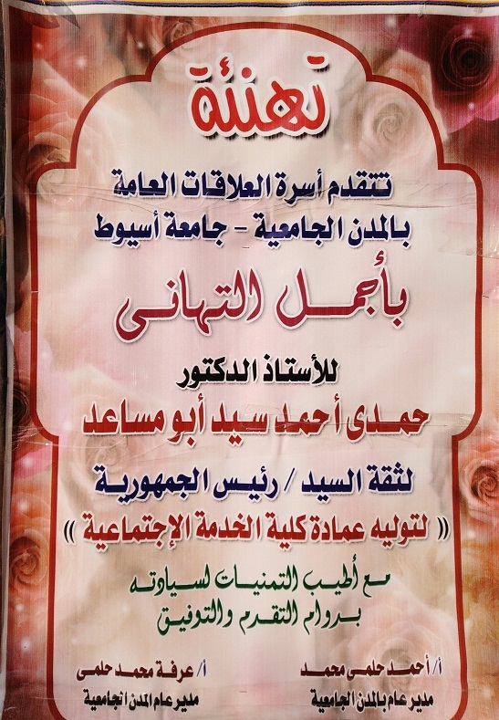 تهنئة من اسرة العلاقات العامة بالمدن الجامعية لعميد الكلية 31 يناير 2019 تهنئة من اسرة العلاقات العامة بالمدن الجامعية لعميد الكلية