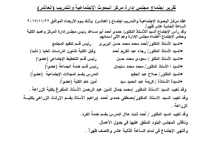 Report of the Board Meeting of the Center for Social Research and Training (Tenth) 26 November 2017 Report of the Board Meeting of the Center for Social Research and Training (Tenth)