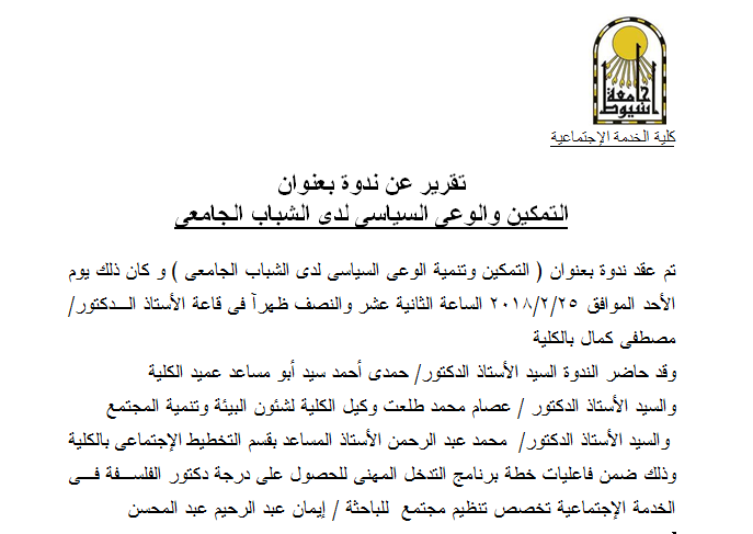 Report on a seminar entitled Empowerment and Political Awareness among University Youth
