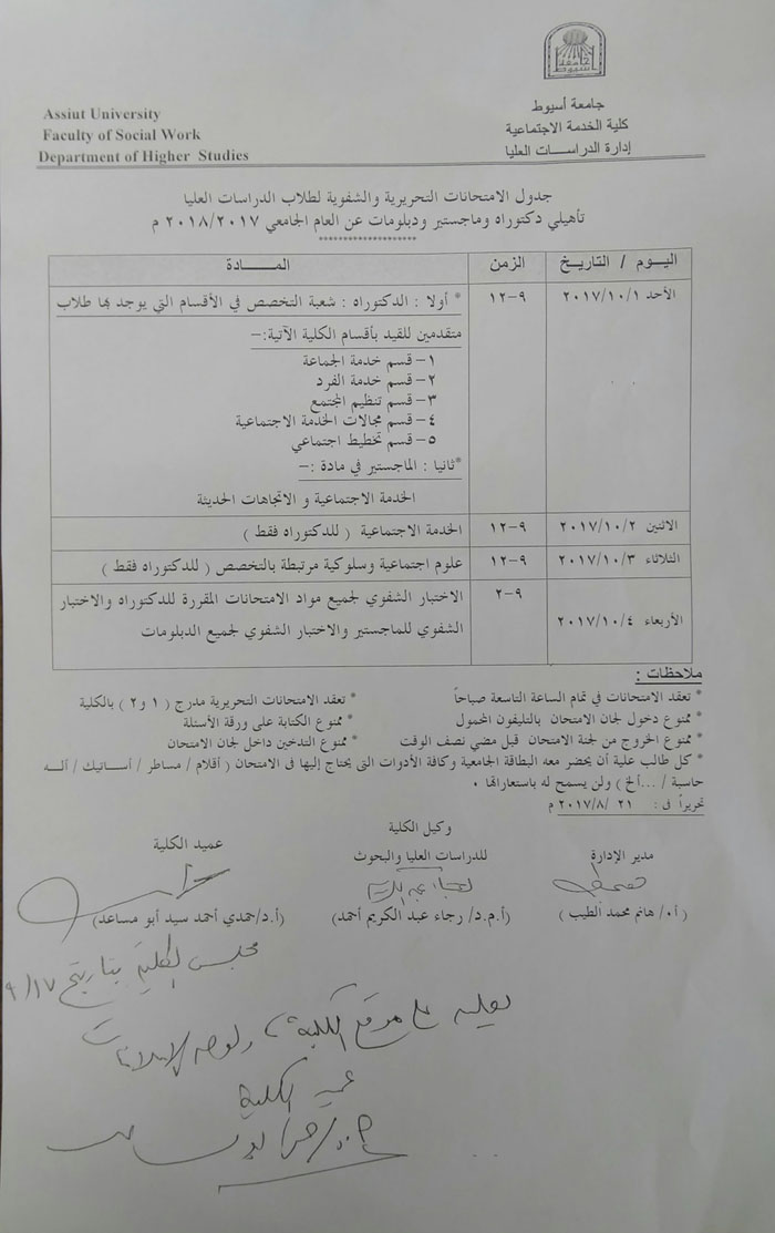 Table of written and oral exams for postgraduate students for the academic year 2017/2018 18 September 2017 Table of written and oral exams for postgraduate students for the academic year 2017/2018