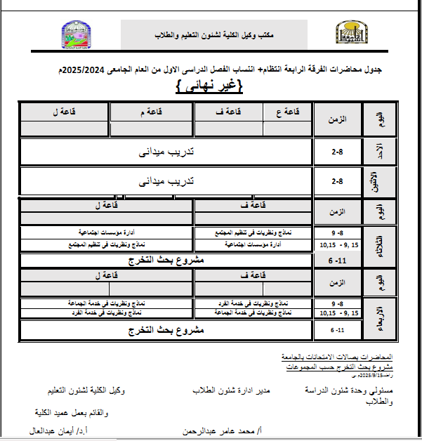 Lecture schedule for the fourth year (regular/distance learning), first semester of the academic year 2025/2026 18 September 2025