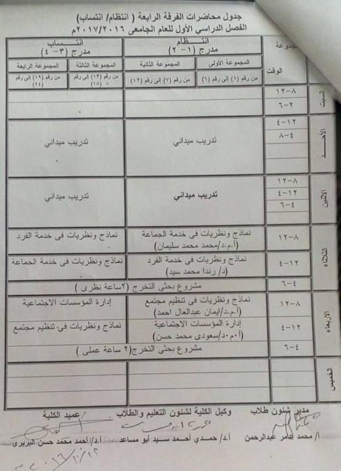 Lectures table for the fourth grade (first term 2016/2017) 12 October 2016 Lectures table for the fourth grade (first term 2016/2017)