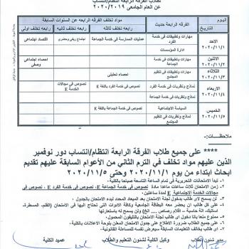 Schedule of written exams for (November 2020 round) for fourth grade students, regularity / affiliation