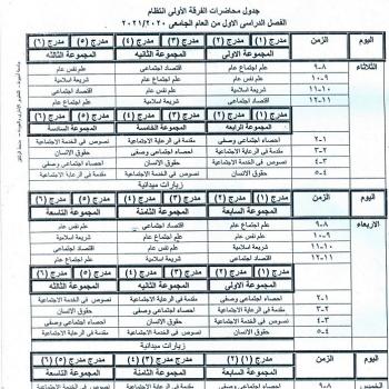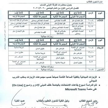 Schedule of lectures for the first year, regularity of the first term of the academic year 2020/2021