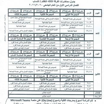 Lectures schedule for the third year, regularity / affiliation of the first term of the academic year 2020/2021