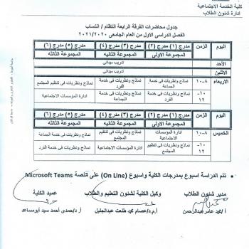 Fourth year lectures schedule, regularity / affiliation of the first semester of the academic year 2020/2021