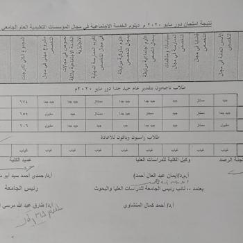 Result of the May 2020 role exam, Diploma in Social Work in the University General Medical Field 2019/2020