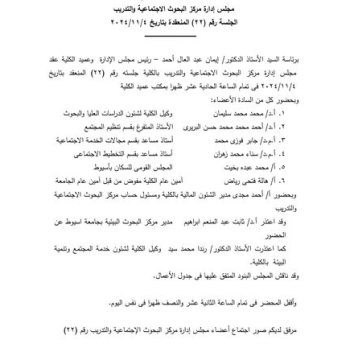 Report on the minutes of the meeting of the Board of Directors of Social Research and Training