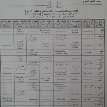 Exams schedule for Private Education for the second term 2015/2016