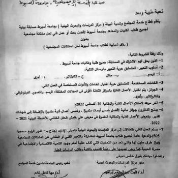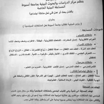 An environmental competition entitled (Youth visions for Assiut University students to solve societal problems)