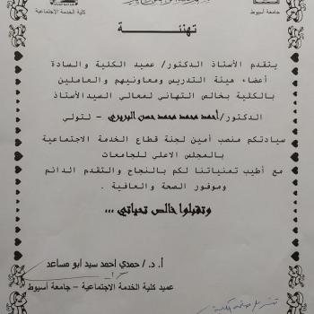 Congratulations to Professor Dr. Ahmed Mohamed Mohamed Hassan Al-Bariry