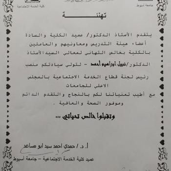 Congratulations to Professor Dr. Nabil Ibrahim Ahmed