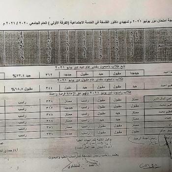 Follow the result of the June 2021 exam, Ph.D. in social work (first year) academic year 2020/2021