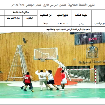 Student activities for the first semester (playing a basketball match in the preliminary round of Assiut University colleges)