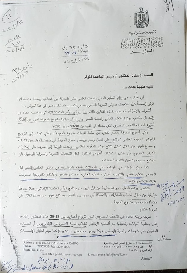 Knowledge week for Egyptian youth, to be held from 10-13 February 2020 Read more about Knowledge week for Egyptian youth, to be held from 10-13 February 2020 Knowledge week for Egyptian youth, to be held from 10-13 February 2020 23 January 2020