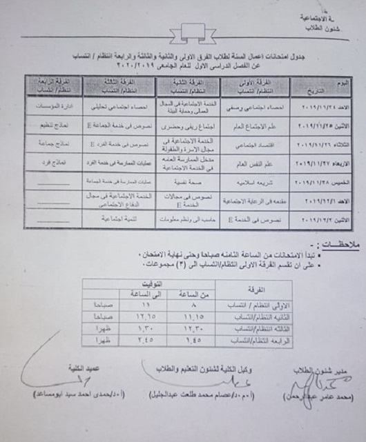 Table of exams of the year for students of the first, second, third and fourth grades (regularity / enrollment) for the first term of the academic year 2019/2020
