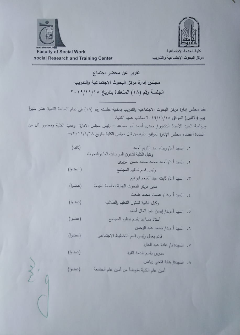 Report on the minutes of the meeting of the Board of Directors of the Social Research and Training Center