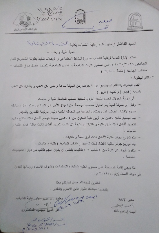 Holding the chess tournament for the academic year 2019/2020 at the level of university colleges Read more about Holding the chess tournament for the academic year 2019/2020 at the level of university colleges Holding the chess tournament for the academic year 2019/2020 at the level of university colleges 9 October 2019