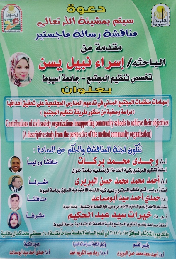 Discussion of the master thesis submitted by the researcher / Esraa Sayed Ismail Read more about Discussion of the master thesis submitted by the researcher / Esraa Sayed Ismail Discussion of the master thesis submitted by the researcher / Esraa Sayed Ismail 14 October 2019