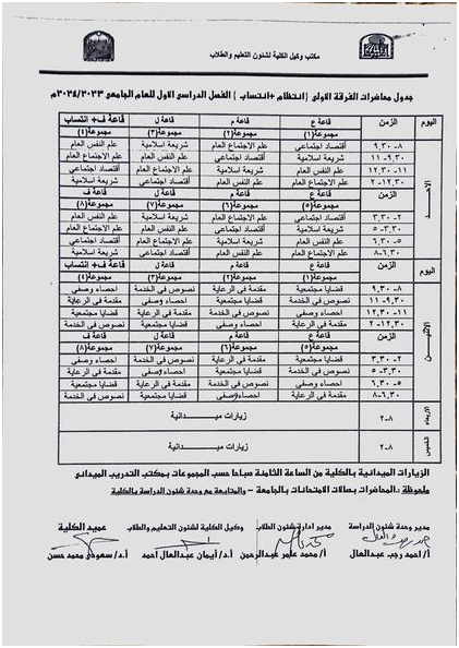Mr. Professor Dr. Saudi Mohamed Hassan, Dean of the College, the Vice Deans of the College, the faculty members, the supporting staff, the Department Directors and the College’s employees, extend their sincere sadness and condolences to Professor Mohamed Farrag, Director of the Misr Al-Khair Foundation and member of the Council of the Faculty of Social Work, Assiut University, on the death of His Excellency’s mother.