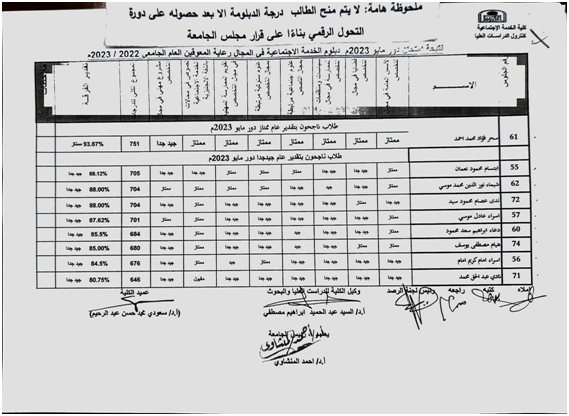 The Board of Directors of the College’s Social Research and Training Center held its session No. (21), held on 7/17/2023 at exactly eleven o’clock in the afternoon in the college dean’s office.