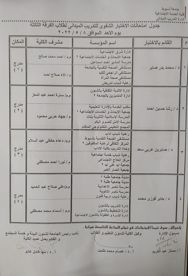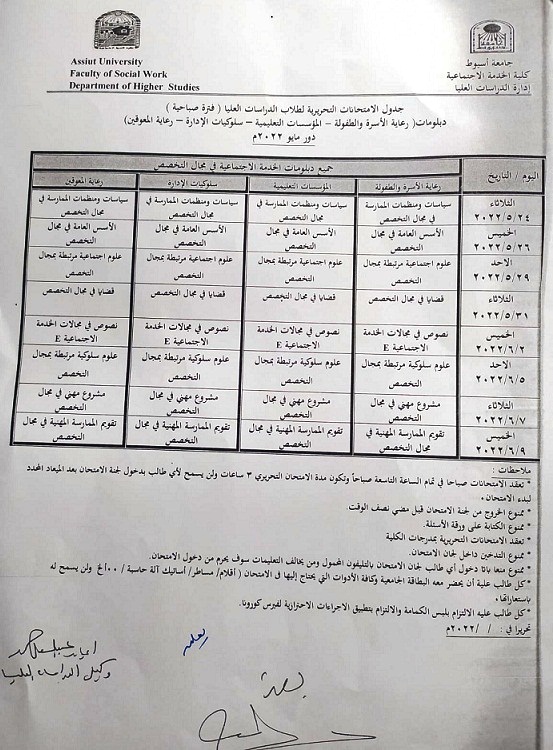 Schedule of written exams for postgraduate students (diplomas (family and childhood care - educational institutions - management behavior - caring for the disabled) May 2022 AD Read more about Schedule of written exams for postgraduate students (diplomas (family and childhood care - educational institutions - management behavior - caring for the disabled) May 2022 AD 26 April 2022