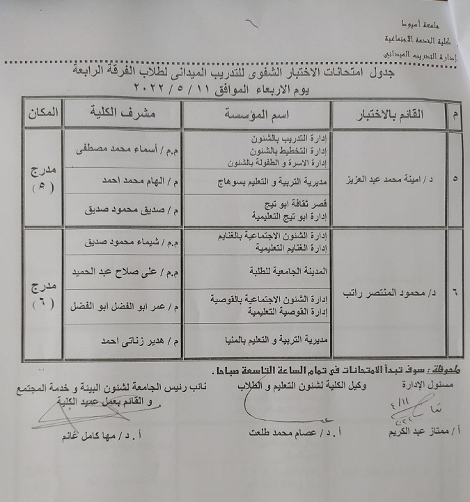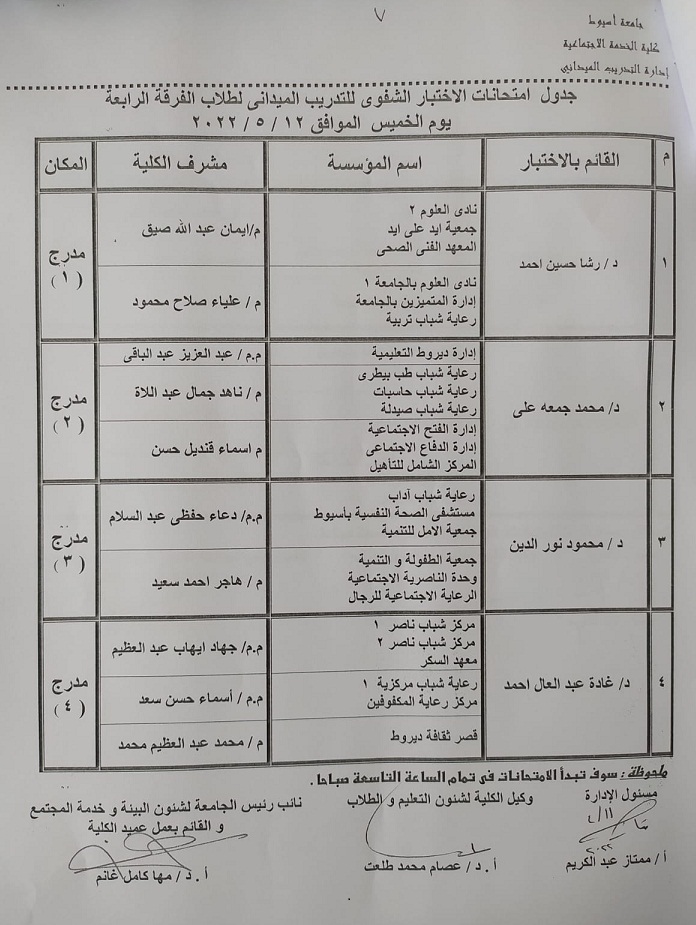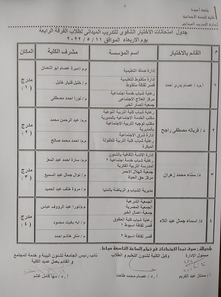 Schedule of the oral test exams for field training for students of the third year (page 1) Read more about Schedule of the oral test exams for field training for students of the third year (page 1) Schedule of the oral test exams for field training for students of the third year (page 1) 19 April 2022