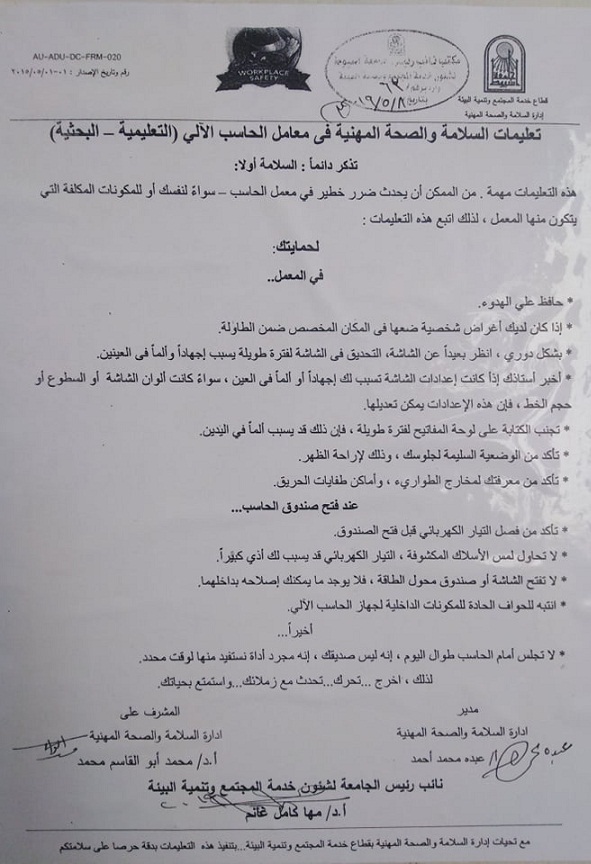 Occupational safety and health instructions in computer labs 22 September 2019 Occupational safety and health instructions in computer labs