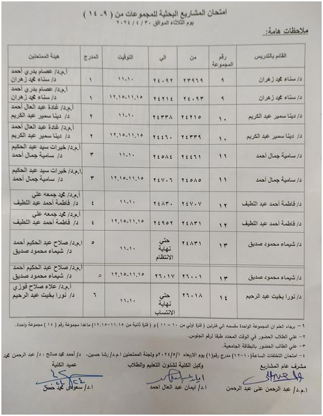 Examination schedules