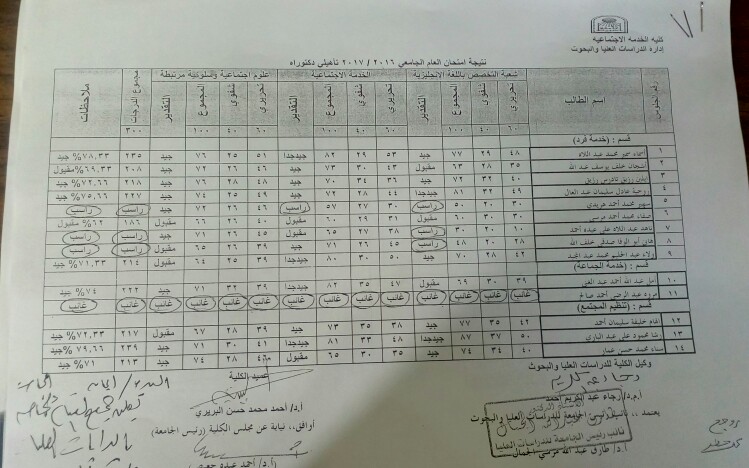 Result of year exam 2016/2017 academic qualification Ph.D.