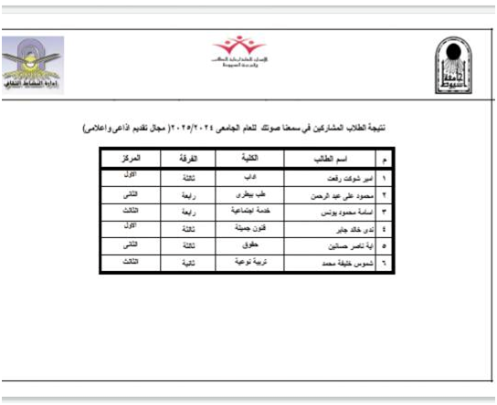 The results of the students participating in the “We Heard Your Voice” for the academic year 2024/2024 (radio and media evaluation field) 1 November 2024