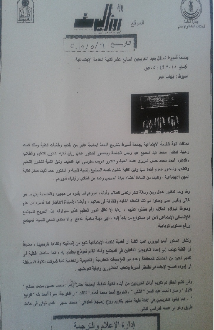 Rosalyousef Journal documenting the events on of the 17th graduates 9 May 2015 Rozalyousef Journal documenting the events on on the 17th graduates of Faculty Of Social Work