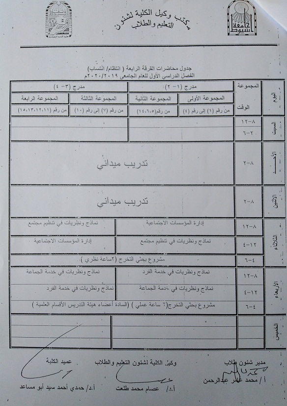 Schedule of the lectures of the first year (regularity / enrollment) the fourth semester of the academic year 2019/2020
