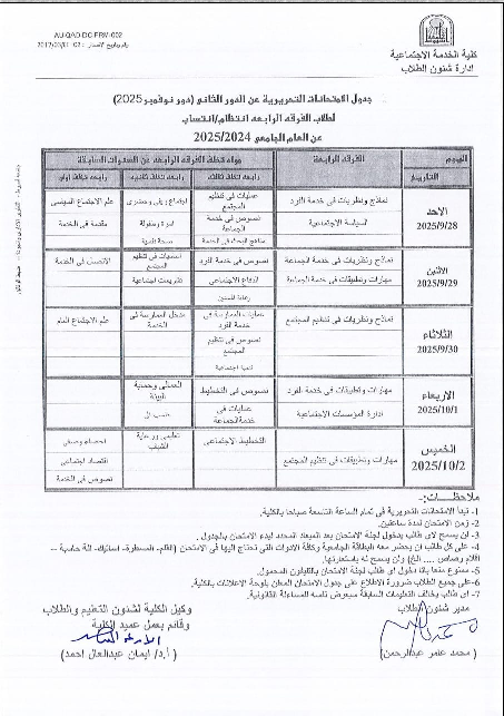 Schedule of written exams for the November 2025 session for fourth-year full-time/exchange students 10 September 2025