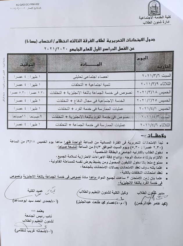 Schedule of written exams for students of the third year, regularity / affiliation for the first semester of the academic year 2020/2021 18 February 2021 Schedule of written exams for students of the third year, regularity / affiliation for the first semester of the academic year 2020/2021