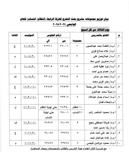 Statement of distribution of graduation research project groups for the fourth year (regular/affiliated) for the academic year 2024/2025 10 November 2024