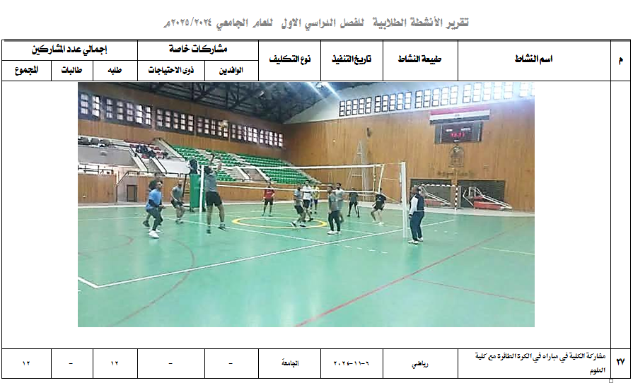 Student activities for the first semester (the college participated in a volleyball match with the College of Science) 5 May 2025