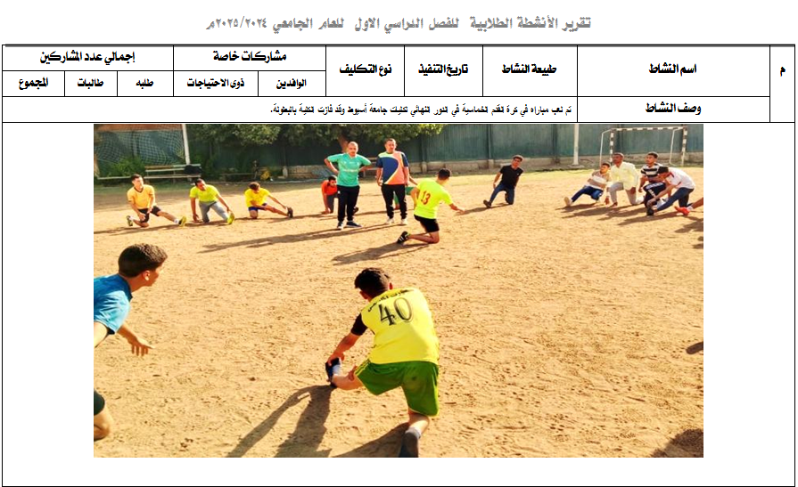 Student activities for the first semester (playing a five-a-side football match in the preliminary round of the faculties of Assiut University) 4 May 2025