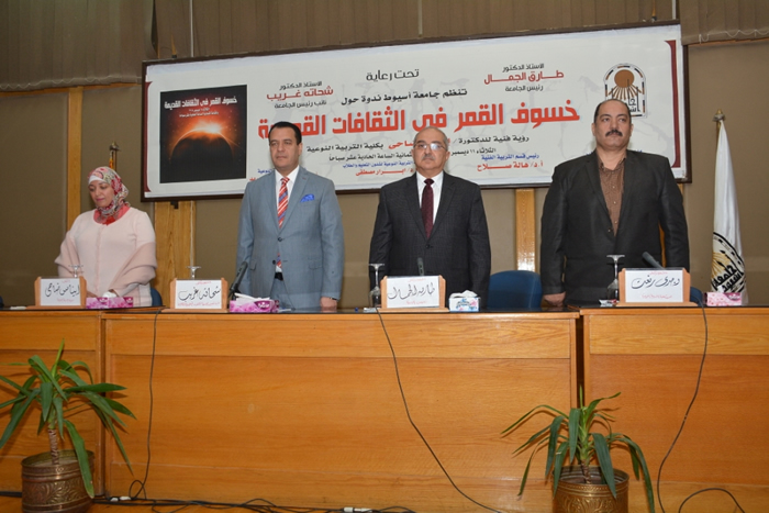 جاء ذلك خلال افتتاحه فاعليات ندوة فنية بعنوان " خسوف القمر فى الثقافات القديمة " للدكتورة إيناس ضاحى مدرس التربية الفنية بالكلية ، وذلك بحضور الدكتور شحاتة غريب شلقامى نائب رئيس الجامعة لشئون التعليم و الطلاب و الدكتورة فوزية أبو النجا وكيل وزارة الثقافة بأسيوط و الدكتور وجدي رفعت عميد كلية التربية النوعية و الدكتورة أبرار مصطفى وكيل الكلية لشئون التعليم و الطلاب و الدكتورة هالة صلاح رئيس قسم التربية الفنية إلى جانب لفيف من أعضاء هيئة التدريس و معاونيهم وعدد من الأدباء و الشعراء و الإعلاميين بالمحافظة و حشد طلابي من مختلف كليات الجامعة .