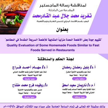 سيتم بمشيئة الله تعالى إقامه حفل تأبين للمغفور لها الدكتورة الفاضلة/ اسماء عبدة حسن المدرس بقسم الاقتصاد المنزلي وذلك يوم الخميس الموافق ٢٠٢٢/٣/٣ م