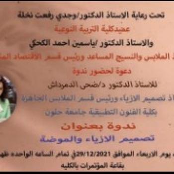 ندوة خاصة بتصميم الأزياء بقسم الأقتصاد المنزلي وقد حاضر فيها الدكتورة / ضحي الدمرداش