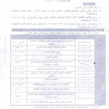 للطلاب والخرجين من الأحد الموافق 18/11/2018 الي