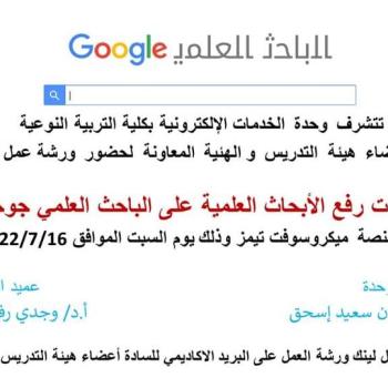 ورشة عمل جوجل اسكولار .. كلية التربية النوعية خطوات رفع الابحاث علي جوجل اسكولار