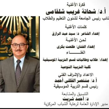 نقدم لكم تفاصيل وكلمات اغنية تكريم ا.د طارق الجمال رئيس جامعة أسيوط والمقدمة إهداء من قسم التربية الموسيقية بكلية التربية النوعية بقيادة الدكتور منتصر القللى رئيس القسم وتحت إشراف الدكتور وجدى…
