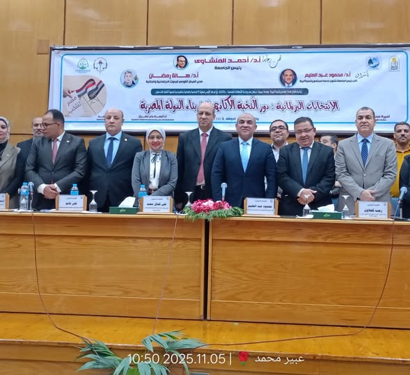 نظَّمت جامعة أسيوط ندوة بعنوان "الانتخابات البرلمانية ومسؤولية النخبة الأكاديمية في بناء الدولة المصرية" وذلك تحت رعاية الأستاذ الدكتور/ أحمد المنشاوي – رئيس الجامعة وبحضور الأستاذ الدكتور/ محمود عبد العليم – نائب رئيس الجامعة لشئون خدمة المجتمع وتنمية البيئة شهدت الندوة حضور عدد من القيادات الأكاديمية بالجامعة، والنخبة الأكاديمية من أعضاء هيئة التدريس والهيئة المعاونة والجهاز الإداري، ومن بينهم الأستاذ الدكتور/ ياسمين الكحكي – عميد كلية التربية النوعية، وبرفقتها عدد من أعضاء هيئة التدريس ومعاونيهم بالكلية. تناولت الندوة دور الطلاب داخل الجامعة ودور عضو هيئة التدريس في توعية الطلاب بأهمية المشاركة في الحياة السياسية، كما هدفت إلى ترشيد الوعي الانتخابي وتنمية الثقافة السياسية بين أوساط النخبة الأكاديمية، وتشجيع تقديم الدراسات والبحوث العلمية التي تسهم في تطوير العمل البرلماني والتشريعي، إضافةً إلى تعزيز قيم المواطنة والانتماء والمسؤولية الاجتماعية لدى النخبة الأكاديمية بالجامعة، تأكيدًا على دور الجامعة في بناء الوعي الوطني والمشاركة الفاعلة في تنمية الدولة المصرية الحديثة.